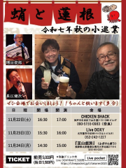 【蛸と蓮根】 増田俊郎と長江健次がゆる~くお届けする大型新人ユニット「蛸と蓮根」 秋の小巡業!名古屋・神戸・長野を回ります。 ※本公演は下記サイトより予約受付をしております https://t.livepocket.jp/e/gp2nd ※全席自由席 |