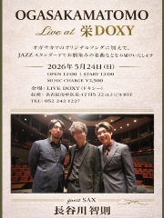 【KATSUMI】 KATSUMI(vo,pf,gt) 「YES,抱きしめて」「Just time girl」 「It's my JAL」等のヒット曲で知られる シンガーソングライター"KATSUMI"!! 今年も名古屋公演、DOXYで皆様を魅了します! 今年度ライブツアーは、またKATSUMIにとっての新たな第一歩です。 皆様と存分に楽しめるようなプログラムでお届けします、お楽しみに♪ ※FC会員先行・メルマガ先行予約 ※一般予約(DOXY予約) ※未就学児は無料。ただし、座席が必要な場合はチケット(¥2,500)が必要。 お問い合せ ※全席自由席 |