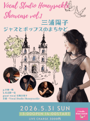 【三浦陽子】 三浦陽子(vo) プロ・アマ問わず、多くのヴォーカリストを輩出してきたVocal Studio Honeysuckleがプロデュースする新シリーズ「Artist Showcase」。第1弾は三浦陽子。ジャズ、ポップス、映画音楽で紡ぐ、華やかな音楽の街角。初夏の午後、どうぞゆったりとお楽しみください。 ※全席自由席 |